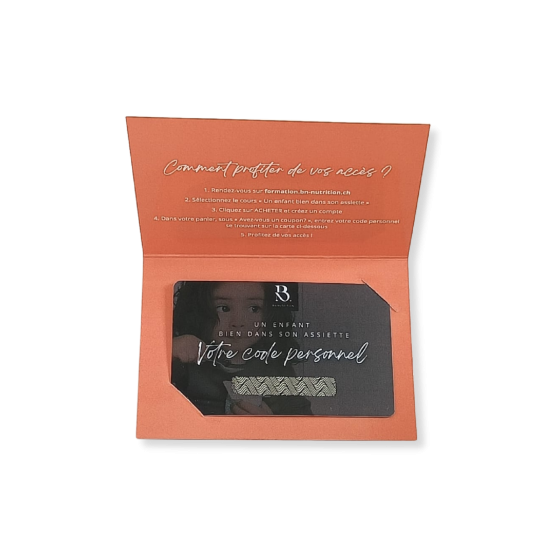 Geschenkkarte für die digitale Ausbildung "Ein Kind, das sich in seinem Teller wohl fühlt".