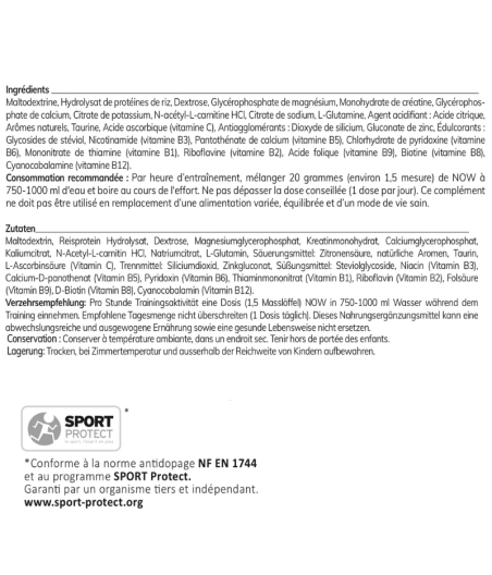The aim of the BN NOW workout drink is to provide the body with the necessary fuel for intense exercise, while ensuring the proper functioning of the nervous systems and the best possible homeostatic balance of the body. This is achieved by improving - even during the effort - the future recovery. To achieve these various objectives, the following components have been combined in ideal proportions: